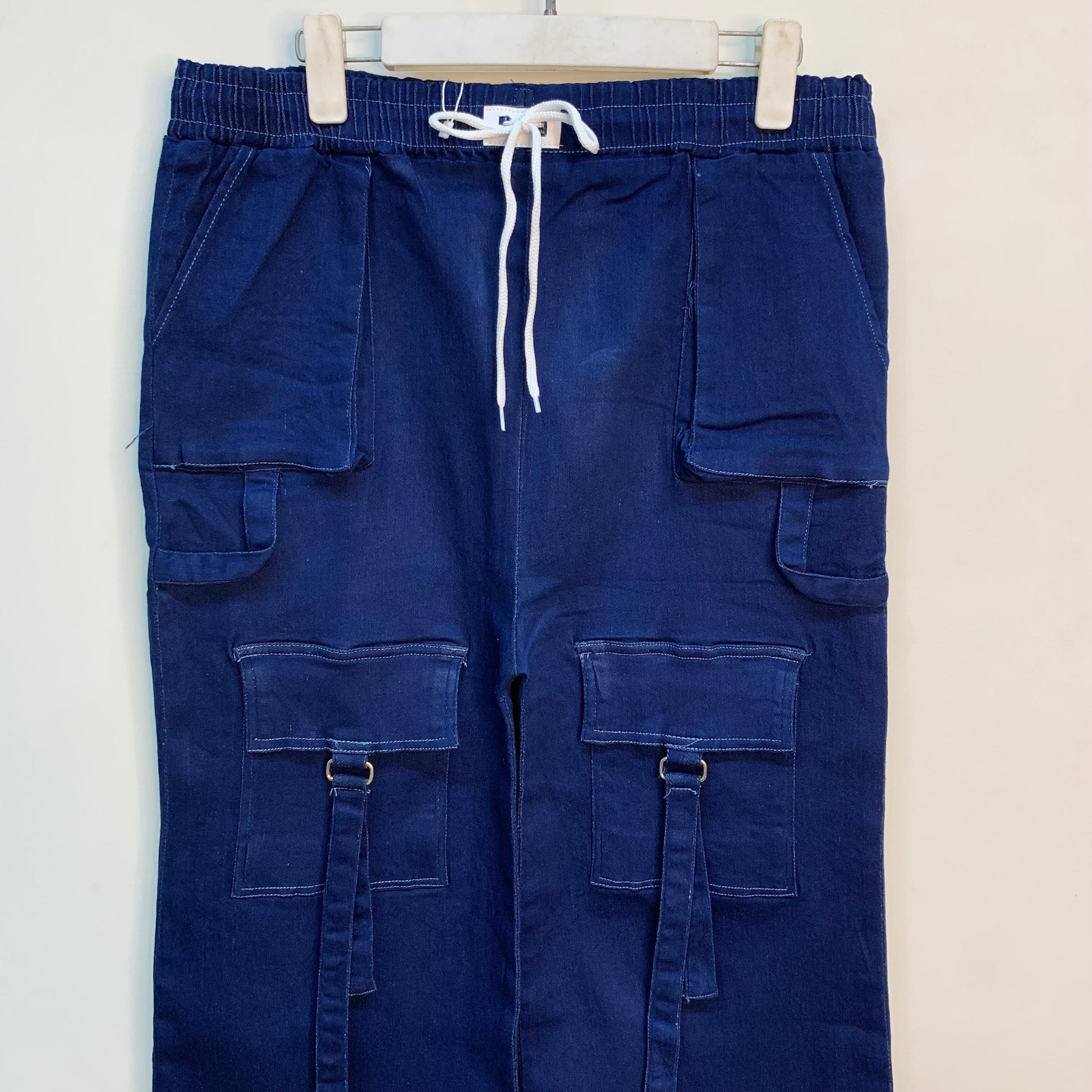 Upgrade your wardrobe with these trendy 4-pocket denim cargo jeans, perfect for a casual yet stylish look. Crafted from soft and breathable denim, these jeans feature a relaxed fit with an elastic waistband and drawstring for added comfort. The flap pockets add a rugged cargo style, while the frayed hem gives a modern streetwear vibe. Whether you're heading out for a day with friends or just keeping it casual, these denim cargos are a must-have for effortless style.