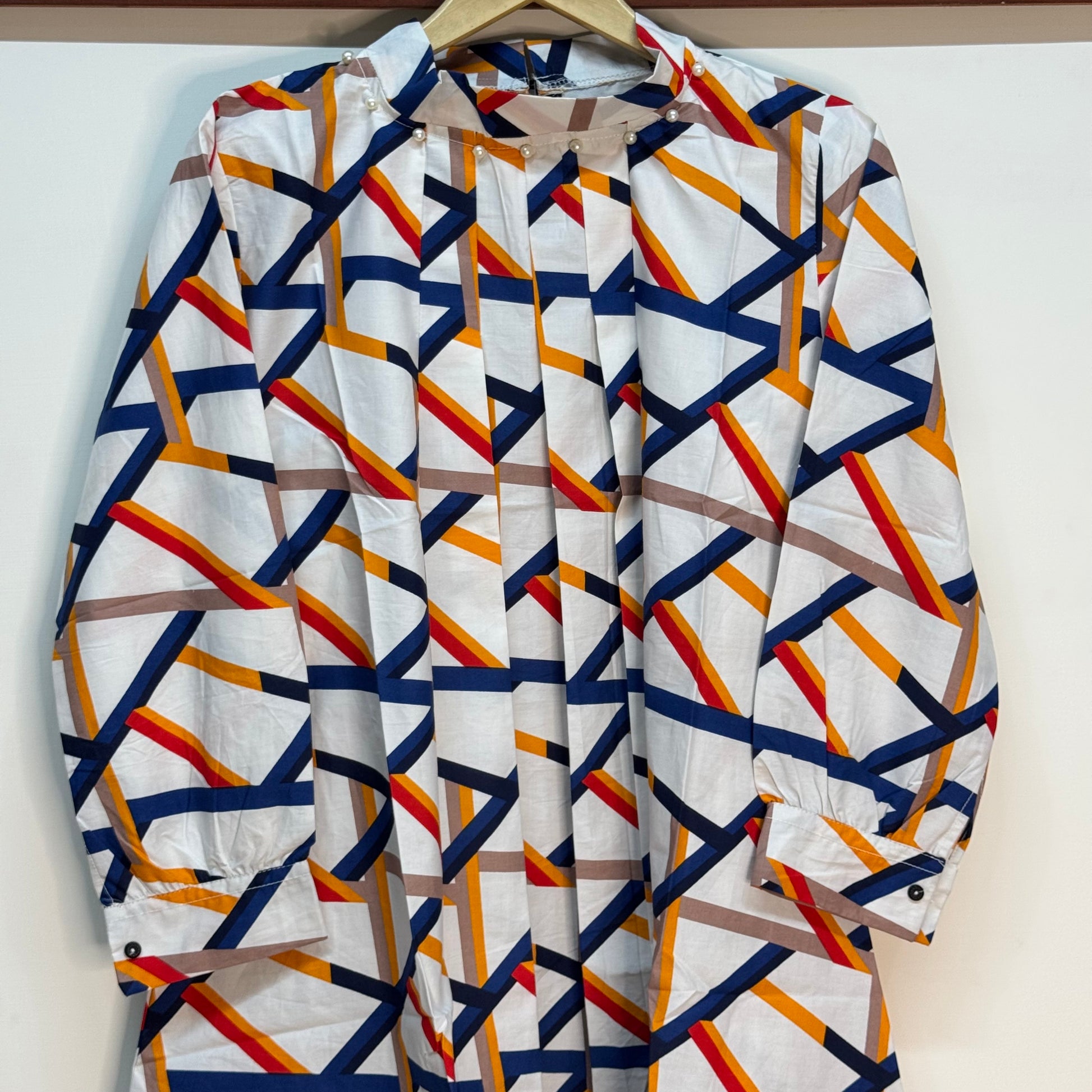 Elegant Two-Piece Printed Striped Top with Pearl Details