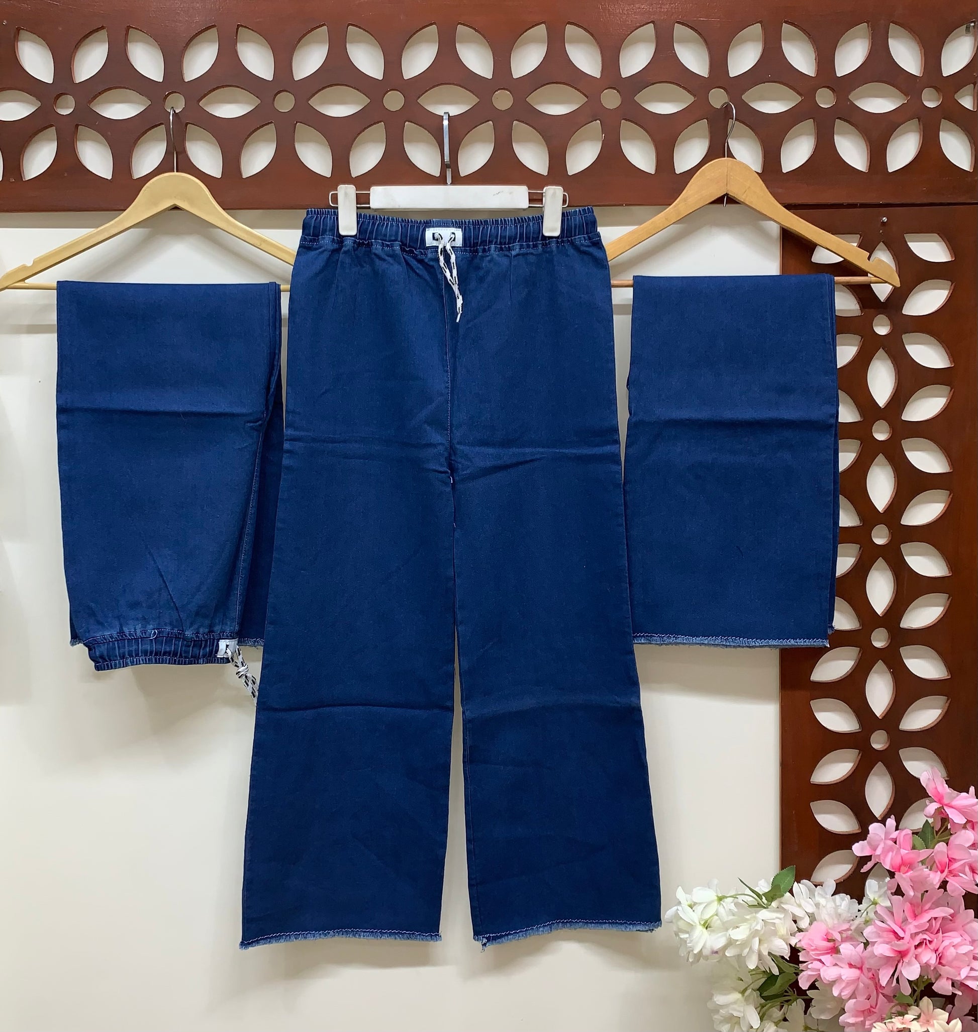 Casual Cool – Elastic Waist Rough Denim Trousers with Dori Tie